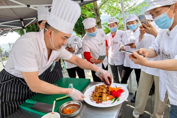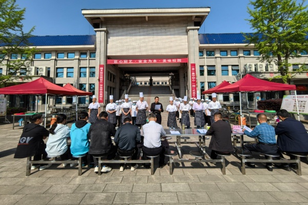 今日竹山 網消息 4月19日上午,竹山一中舉辦主題為“匠心廚藝·安全為先·美味校園”的第三屆食堂廚師廚藝大賽,8名大廚同臺競技。