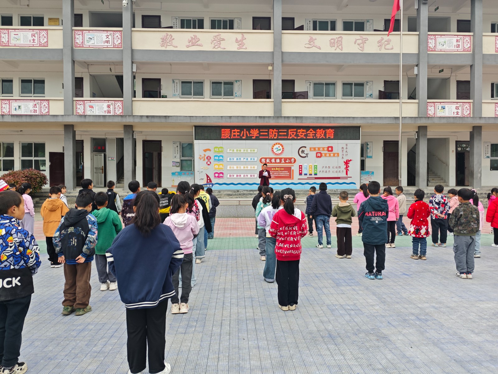 今日竹山網(wǎng)消息 4月20日,擂鼓鎮(zhèn)腰莊小學(xué)利用周一升旗儀式時間,開展“三防三反”專題安全教育活動,切實筑牢校園安全屏障。