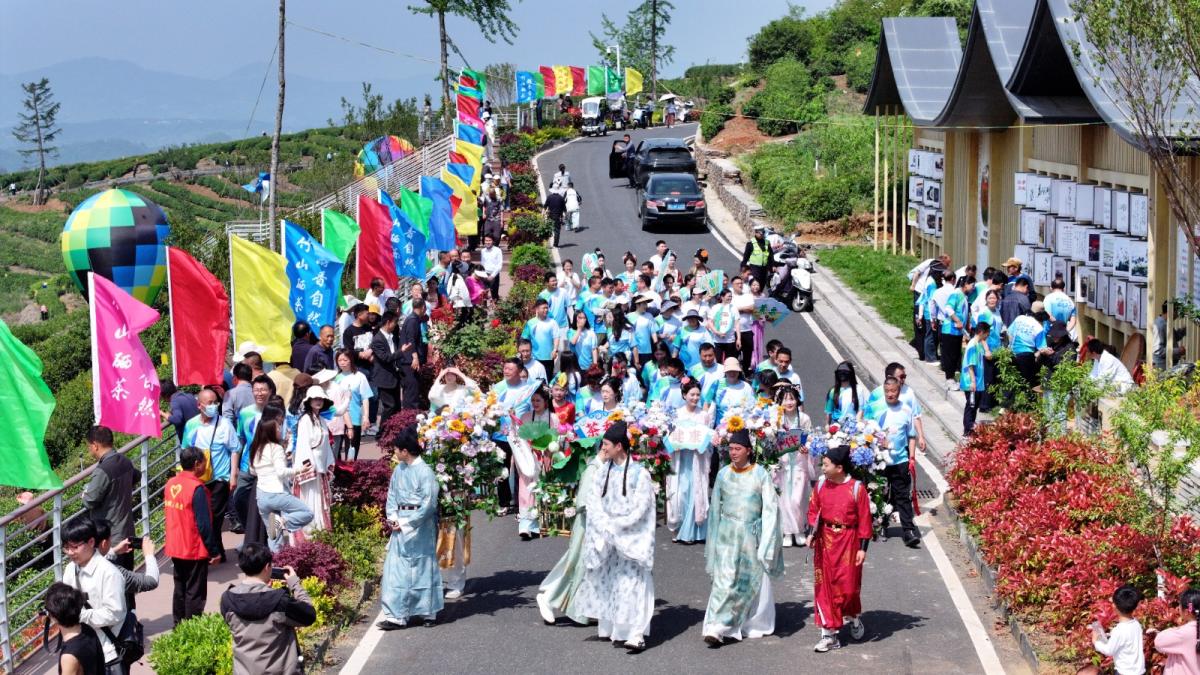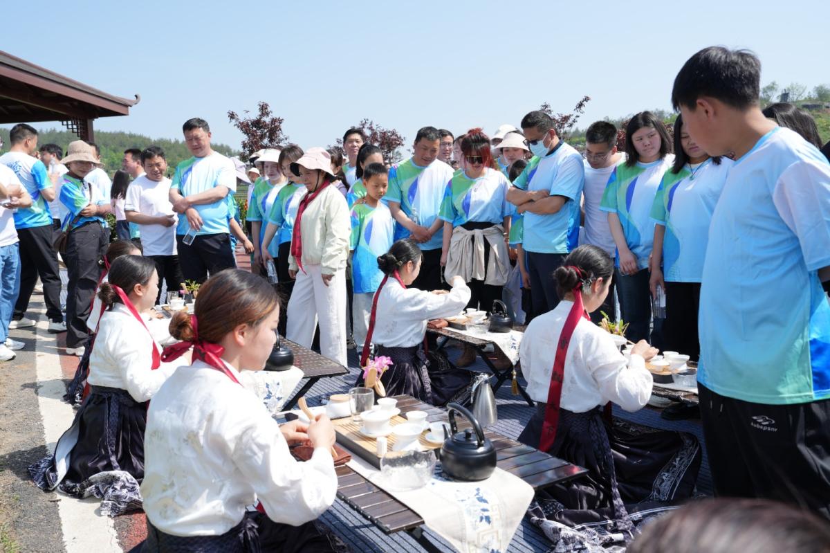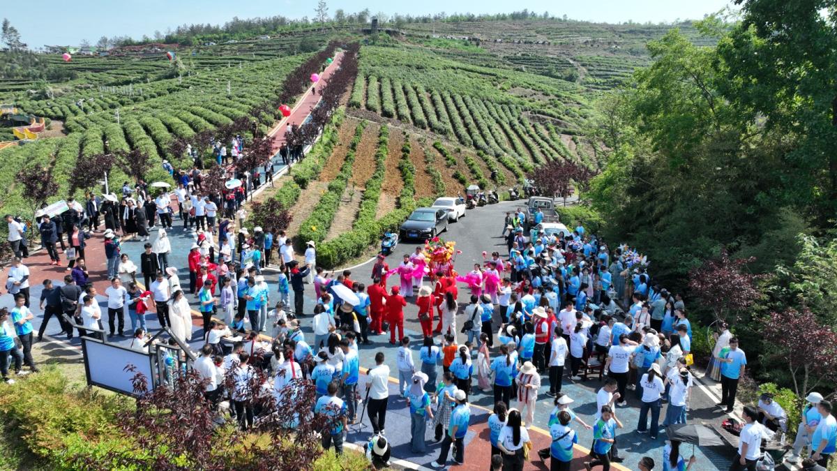 雙龍匯聚“牽手” 共赴茶香之約。在明媚的春光里,在綠油油的茶山間,來自寶豐鎮的12支代表隊和嘉賓游客一起,沿著龍井智慧茶園的山頂棧道與茶園彩虹道環繞茶山前行,盡情領略春日茶山的盎然生機與悠然愜意。