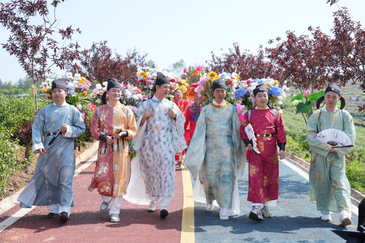 活動在威風鑼鼓的激昂旋律中拉開帷幕。竹山龍井與杭州西湖龍井代表互贈茶禮,寓意兩地將以茶為媒、攜手共富的美好愿景。兩地文藝團隊進行了文藝展演,并為湖北汽車工業學院藝術學院相關人員頒發“藝術村長”聘書,助力茶山文化建設提質升級。